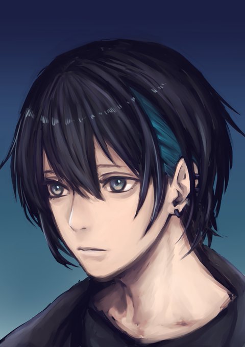 黒髪メッシュです 片目隠れとピアス描くのハマってます これもフリーアイコ 千隼 巡回中のイラスト